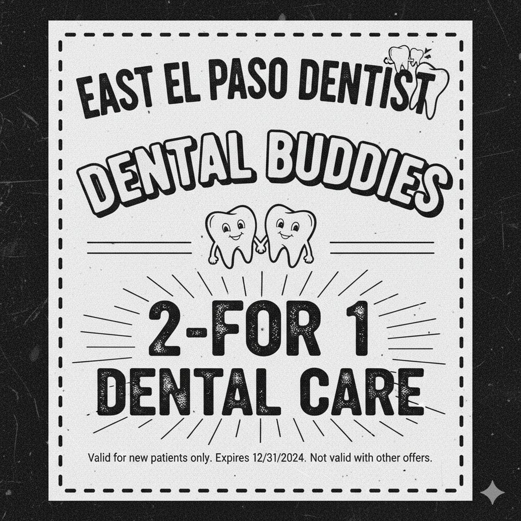 Joining the ‘Dental Buddies’ at East El Paso Dentist is a great way to prioritize your oral health, achieve your dream smile, and share the experience with someone special. These offers are designed not only to give you a radiant smile but also to make dental care more accessible and enjoyable.
